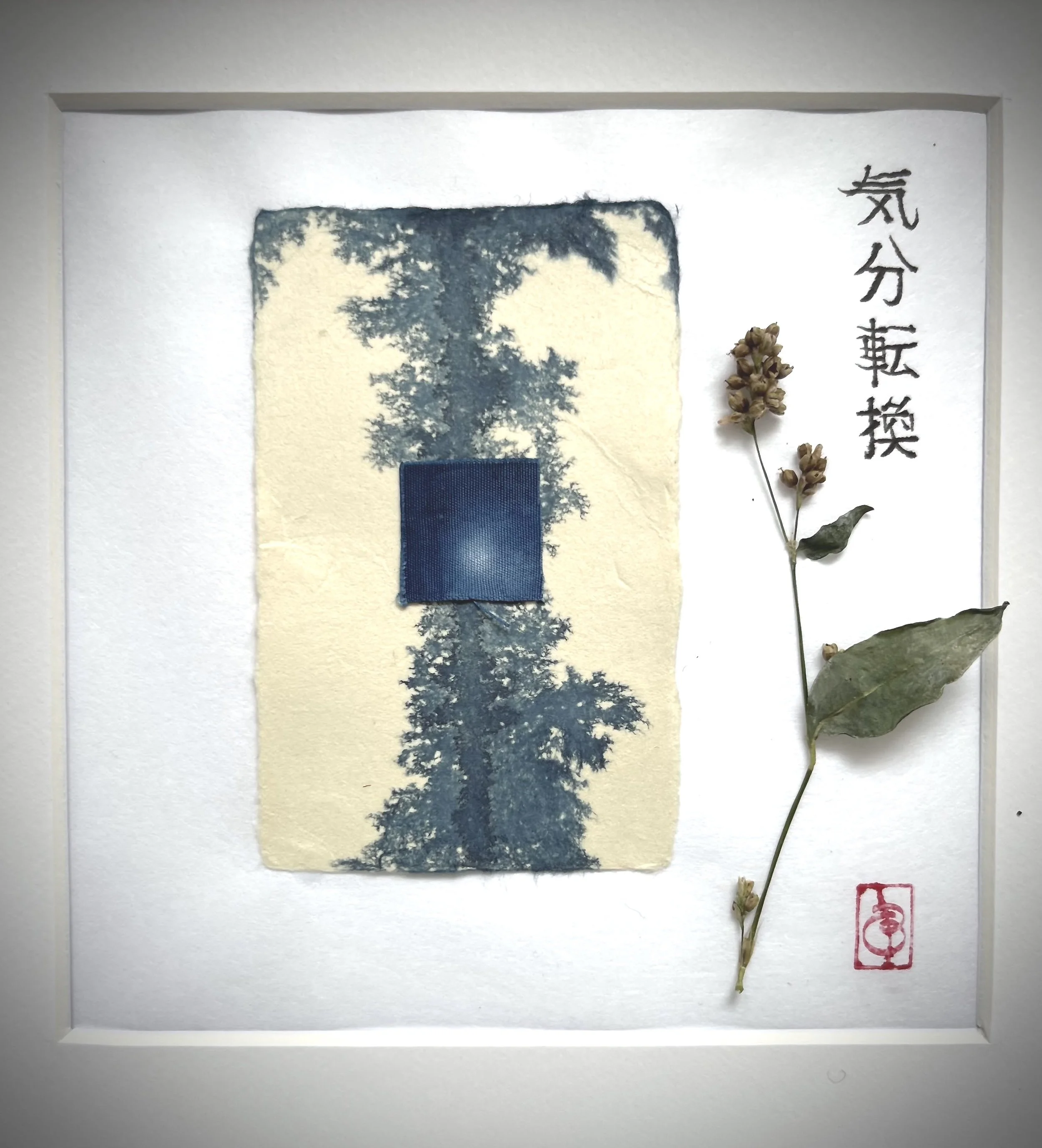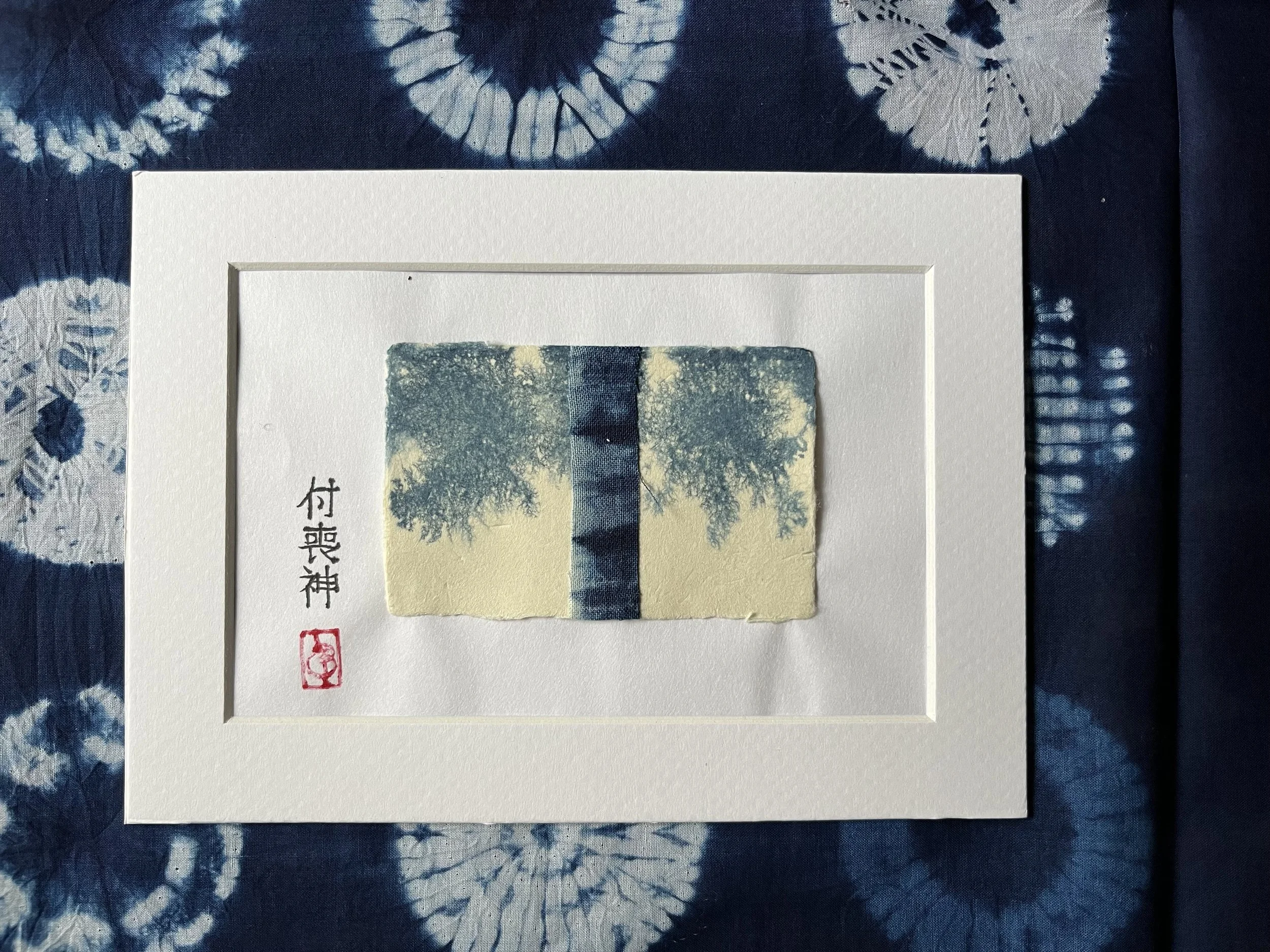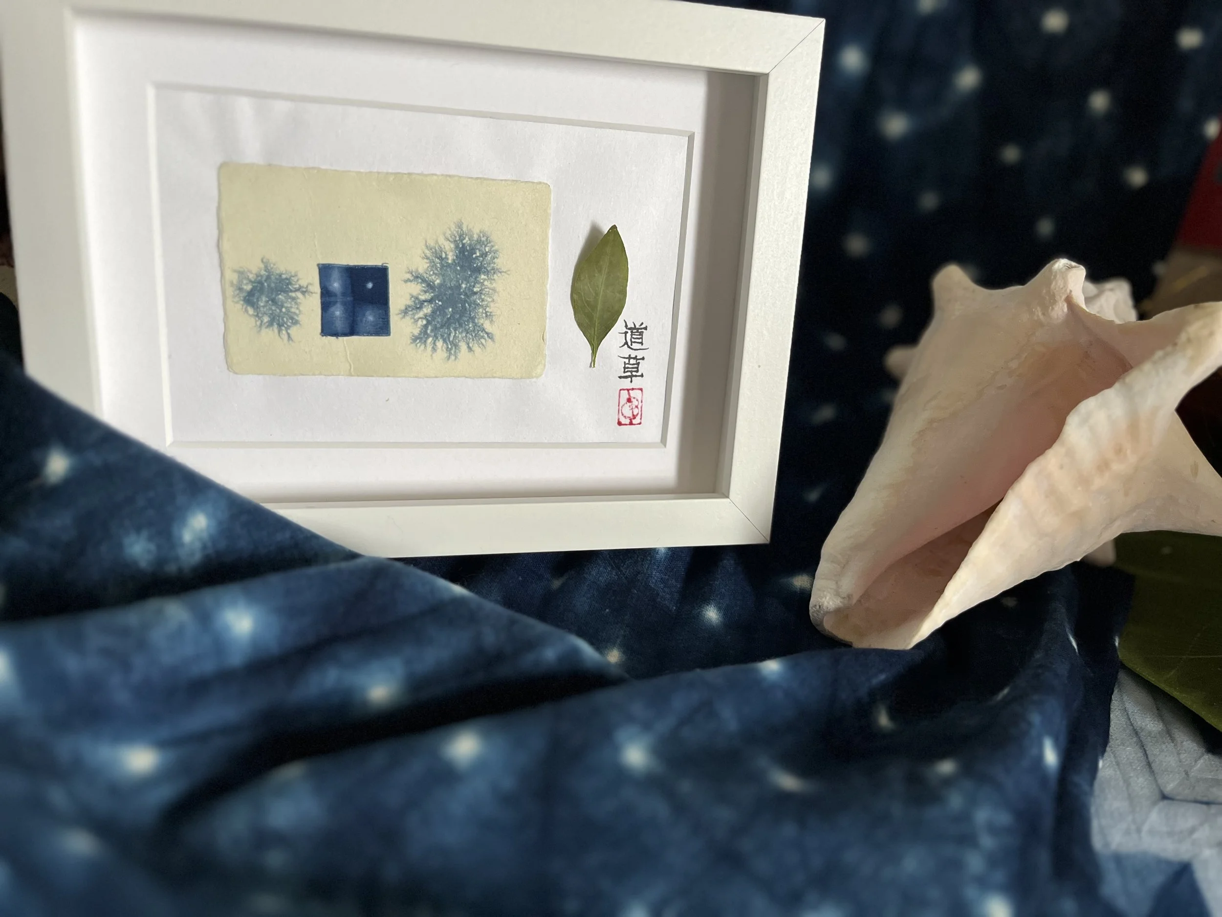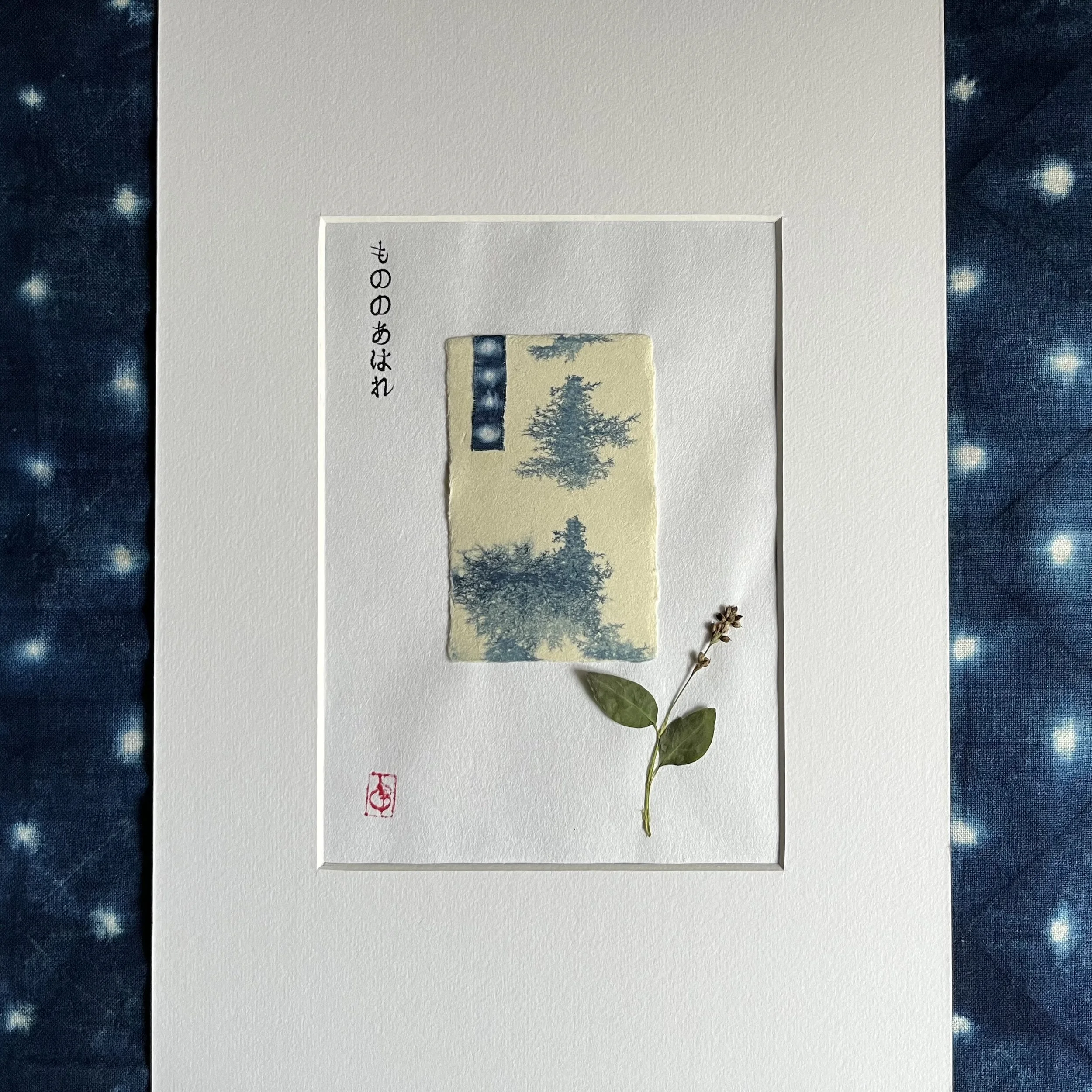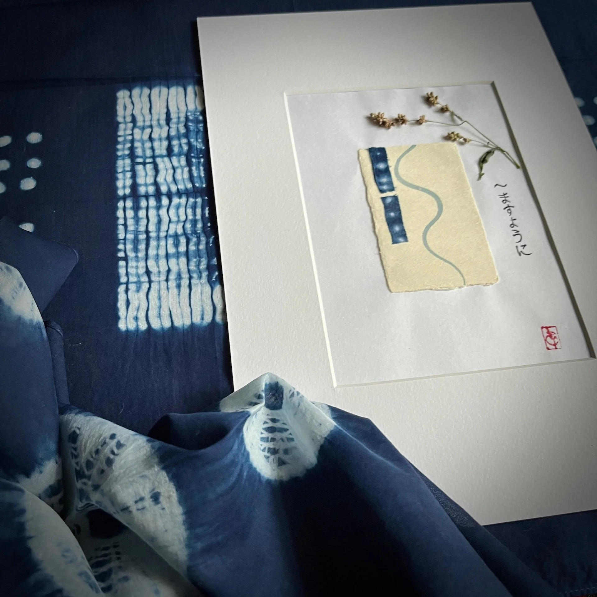 Ispirata dal libro di Laura Imai Messina, intitolato "Wa - La via giapponese all’armonia", e avendo trovato con grande felicità un rivenditore in Italia della famosa carta Kozo di Awagami ( Awagami factory ), realizzata a mano con tecniche tradizionali, comincio a creare piccole card artistiche dipinte con l’indaco naturale, alle quali applico dei piccoli pezzi di stoffa tinta shibori, foglie e semi essiccati di indaco giapponese. Scrivo a mano le frasi in lingua giapponese appositamente selezionate da quella fonte inesauribile di saggezza che il Wa rappresenta, e compongo il tutto su un sottile foglio di carta washi.